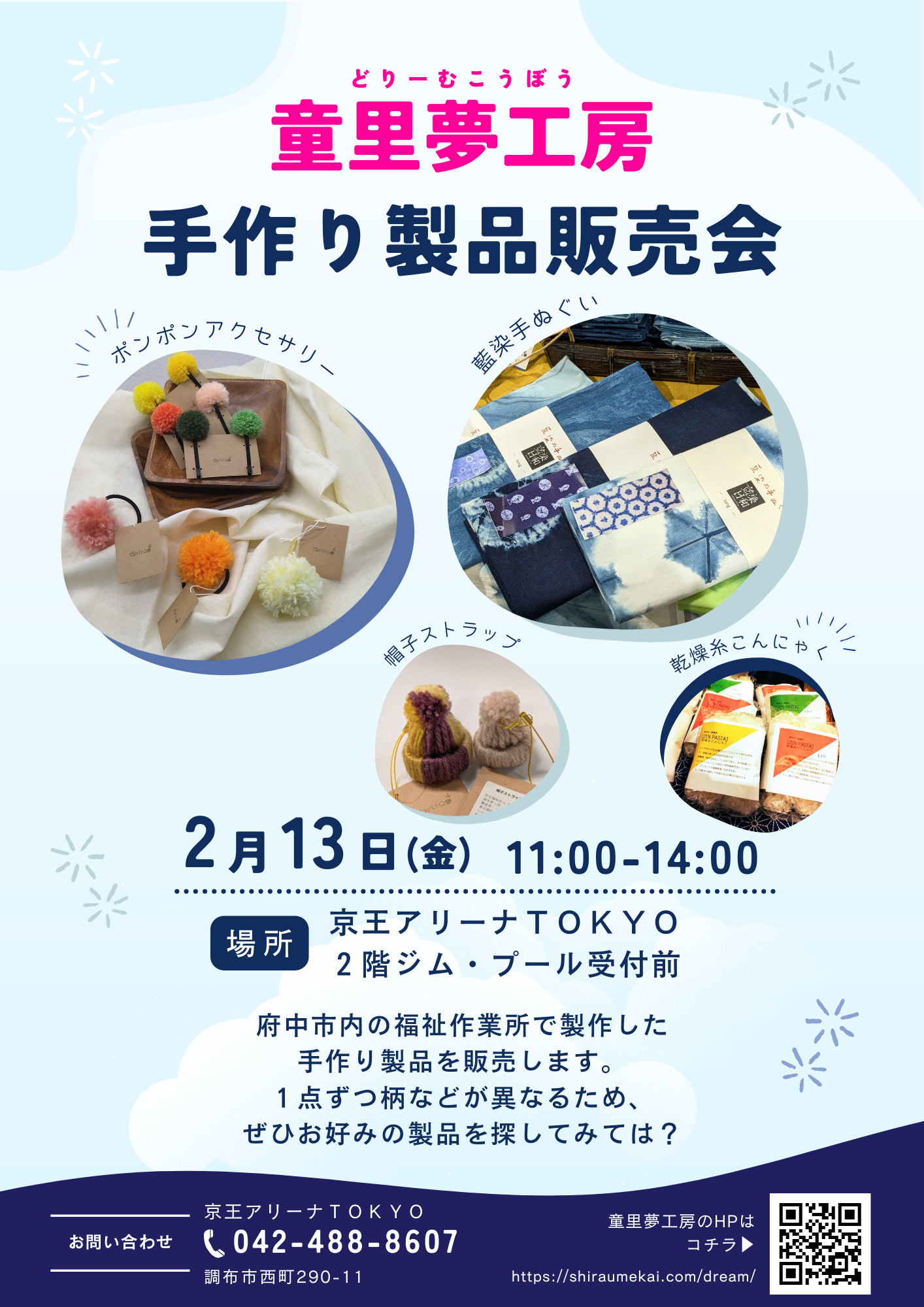 東京都府中市にある福祉事業所の童里夢工房さんが制作した手作り製品を京王アリーナTOKYOで販売してくれます。